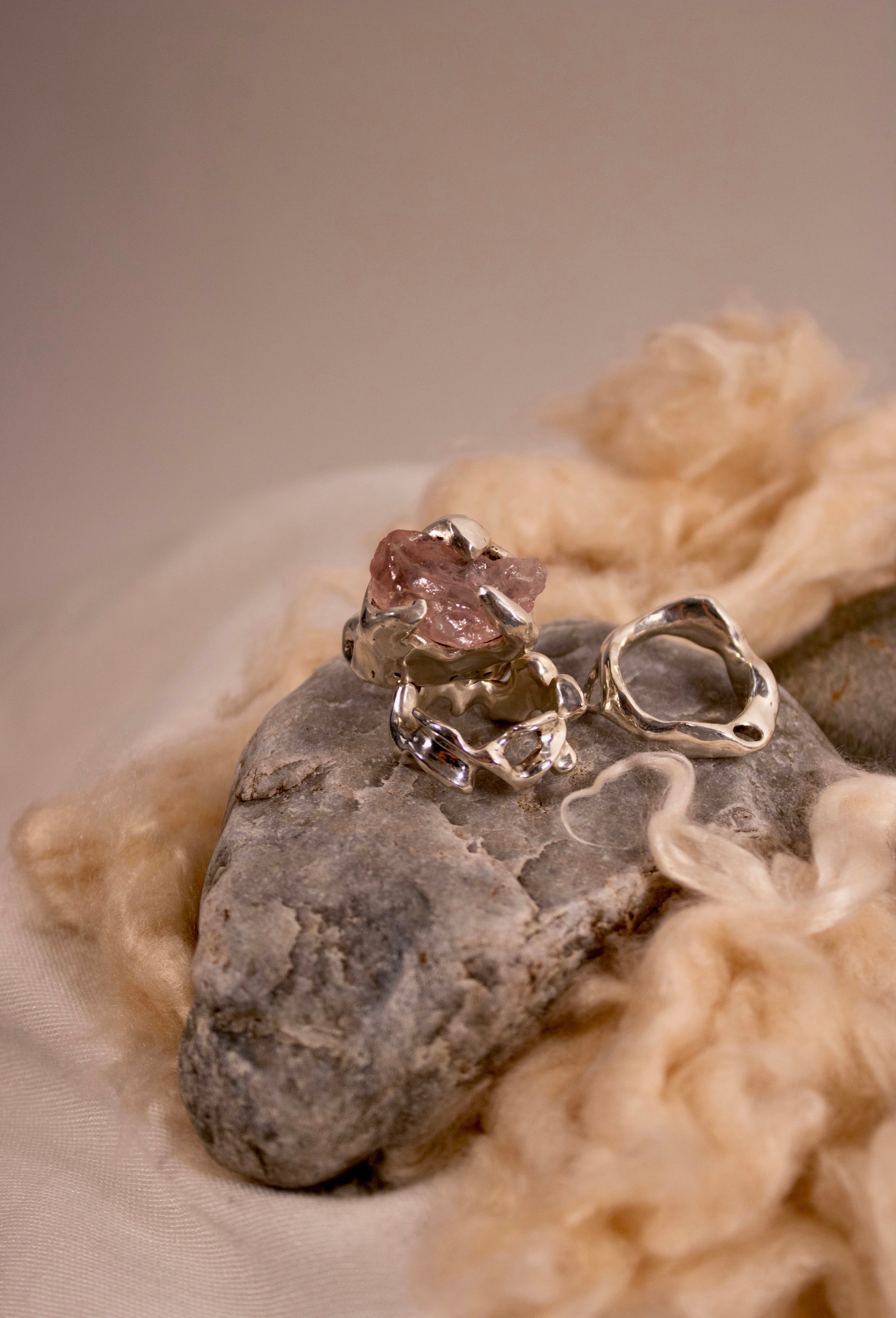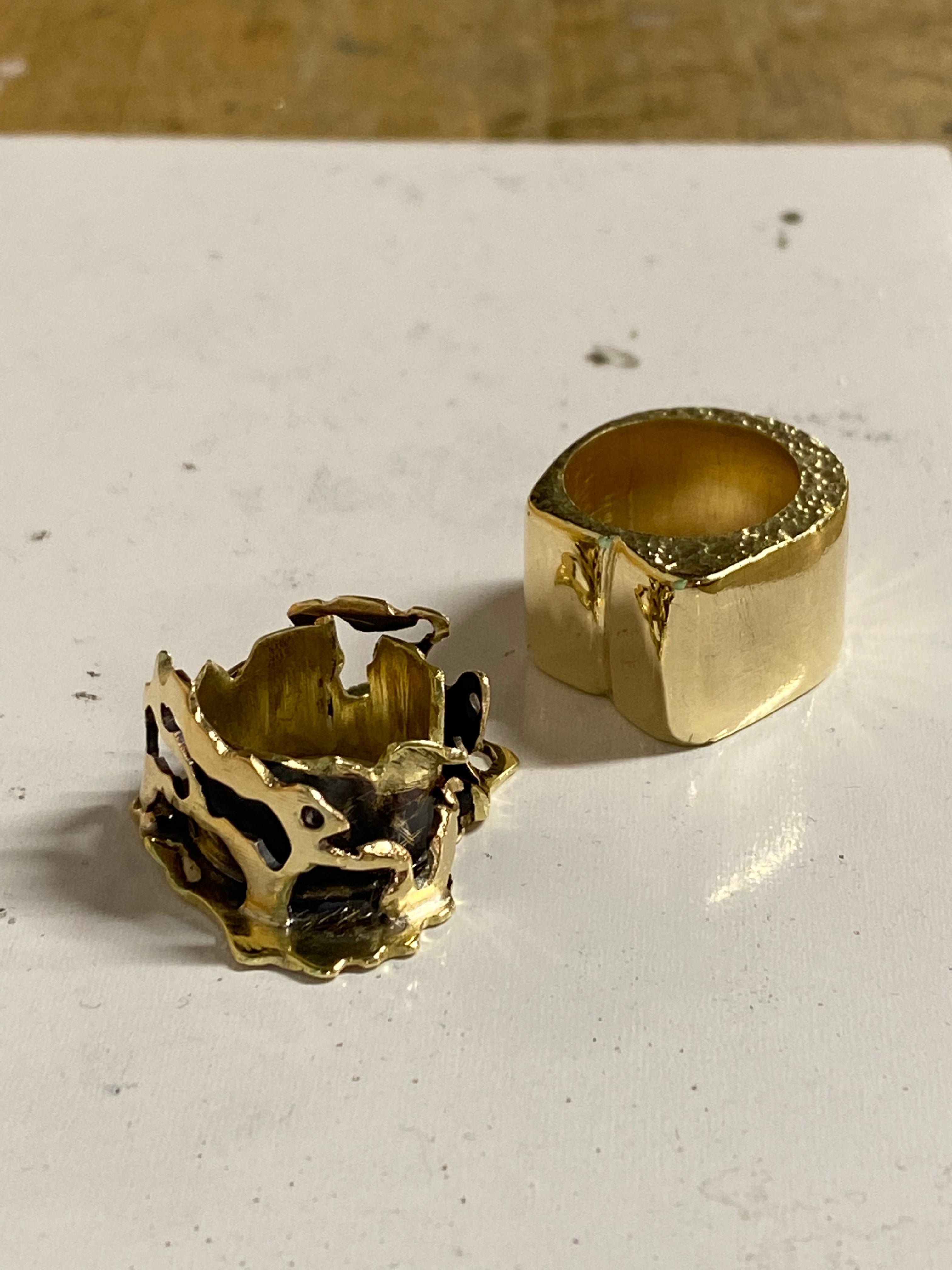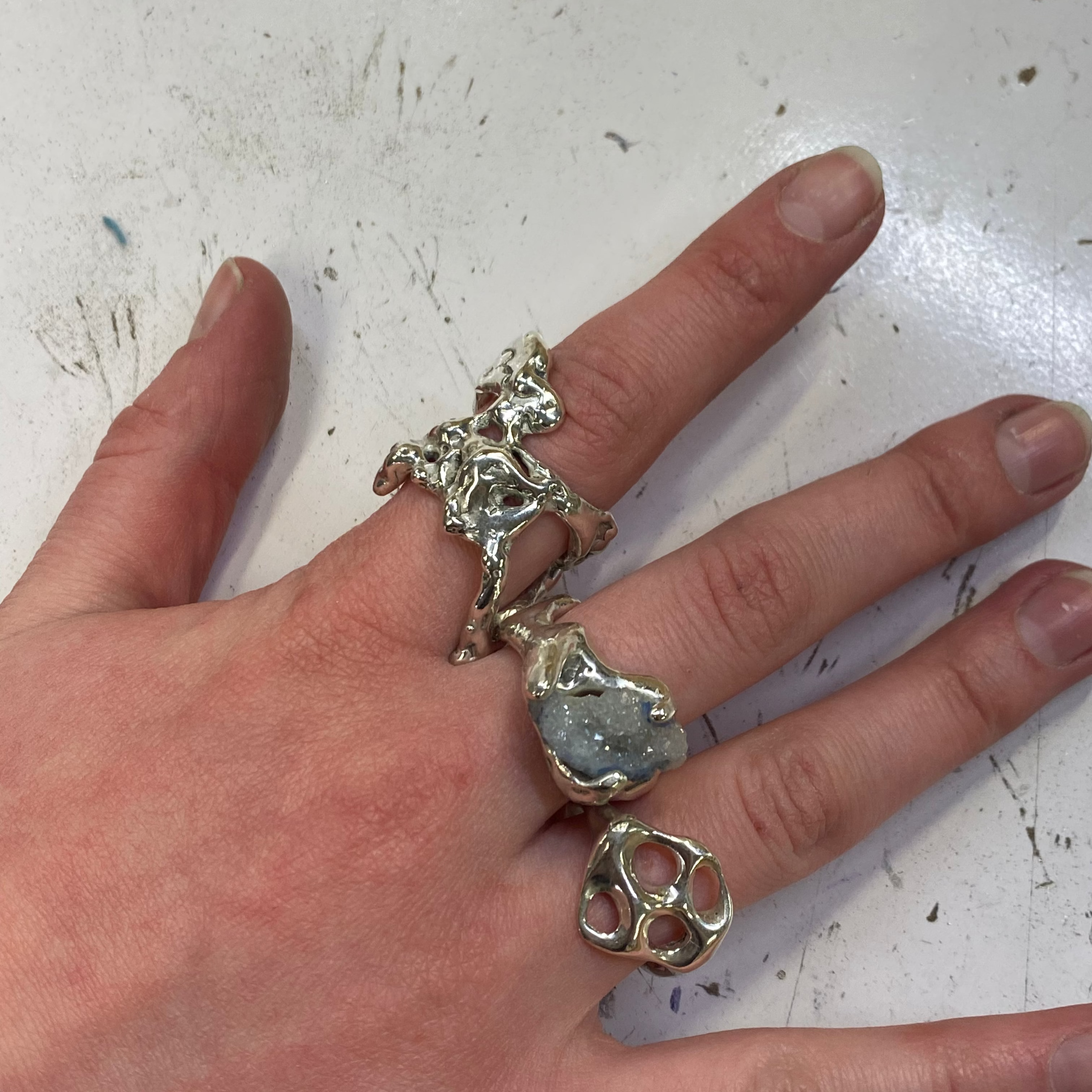 (TOP TO BOTTOM) LAVA RING, BLUE GEODE RING, & HONEYCOMB RING.